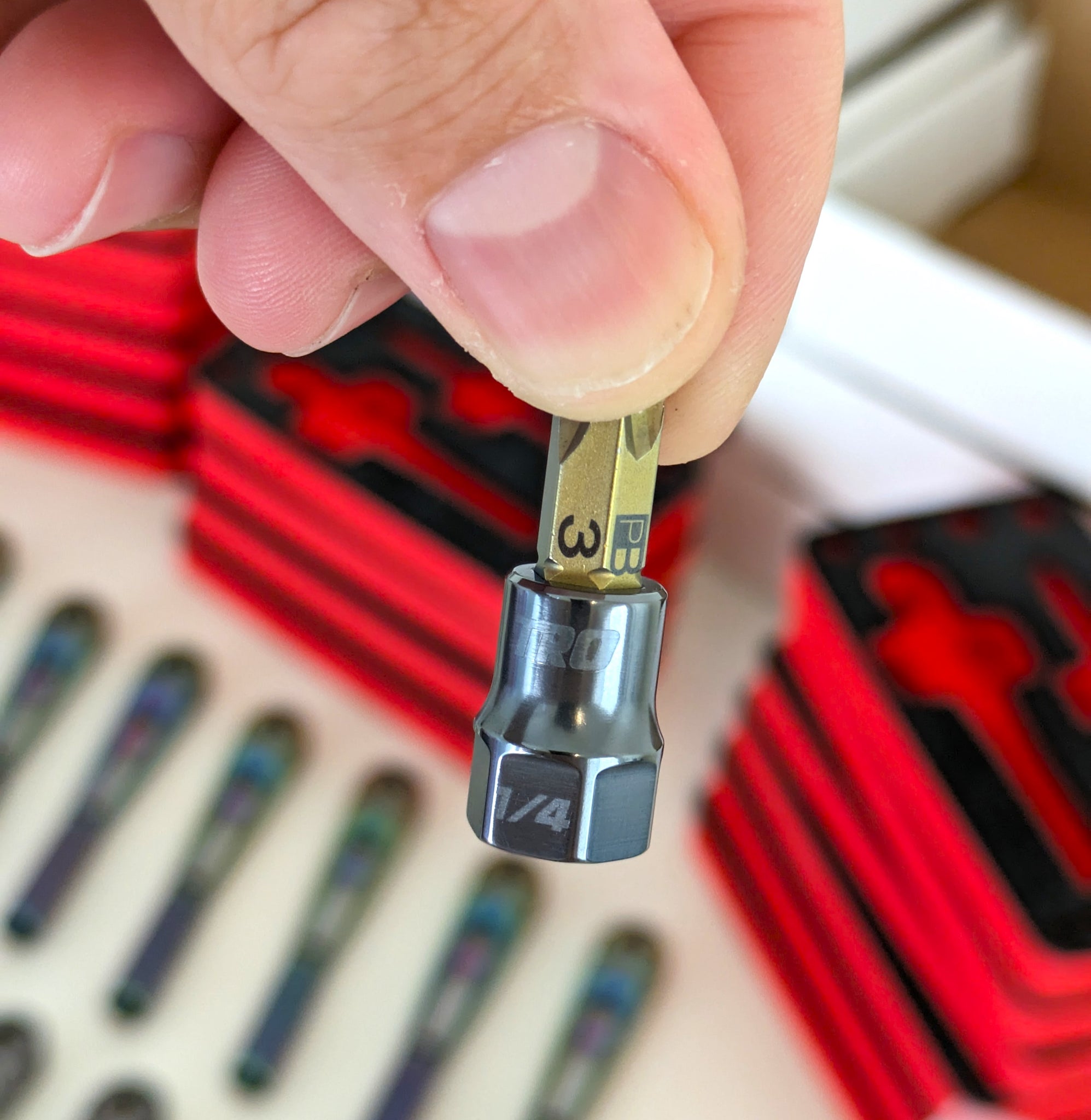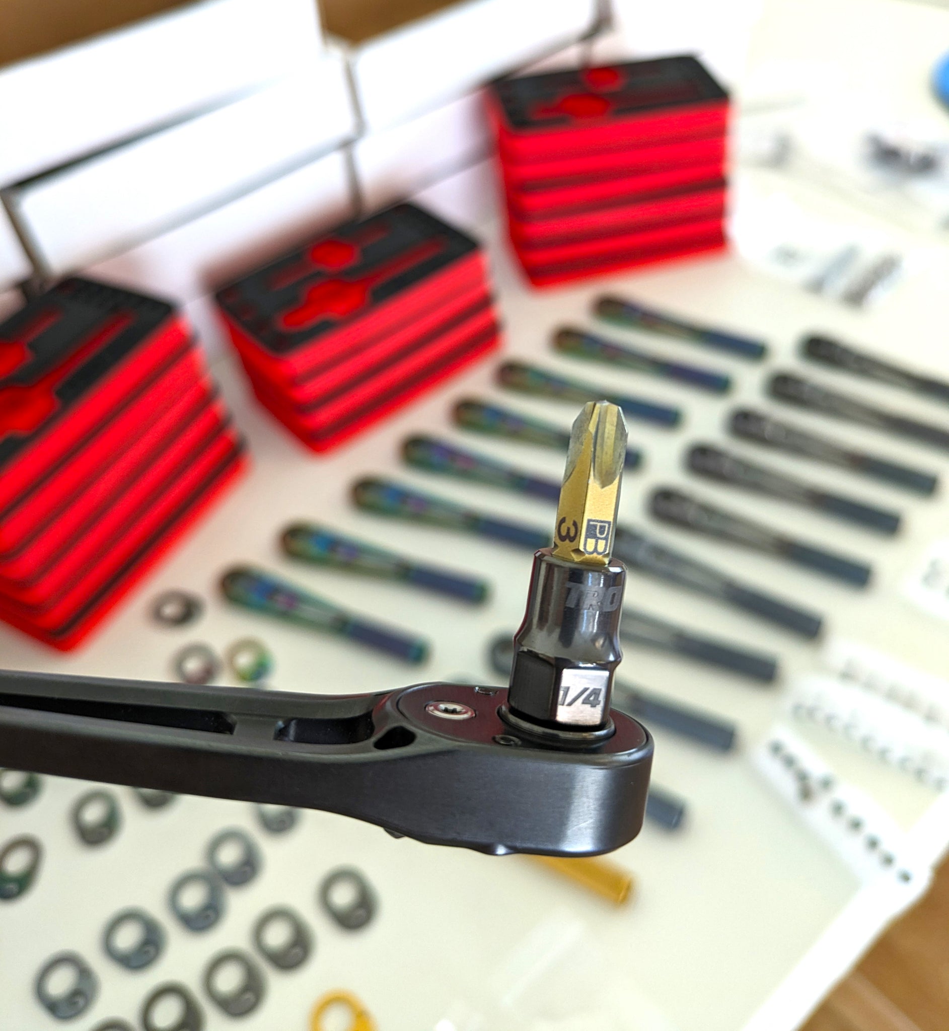 1/4" Hex Bit Holder machined from one of the strongest metals on Earth.
